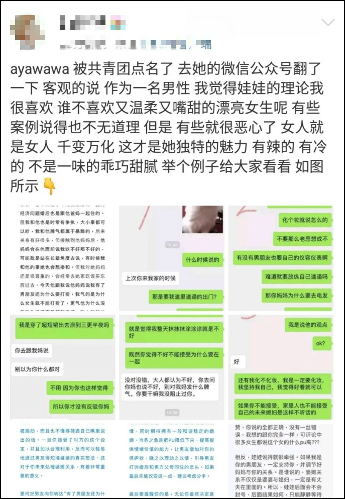 如果不是看了Ayawawa的文章,真想象不到朗朗乾坤下還有如此陰沉灰暗的教唆。男女平等國策下,竟有把女性往塵埃裏踩踏的課程!在她的所謂理論裏,完全沒有女性要自立自強,相反,她教唆女人不能有事業心,否則男人不喜歡。