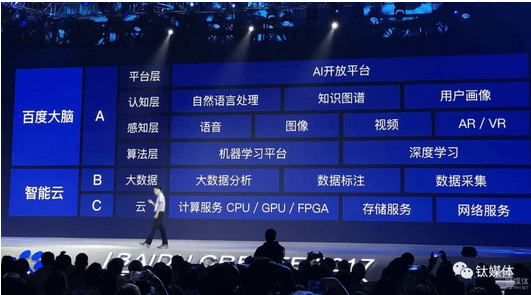 在陸奇的領導下,百度逐漸形成以Apollo計劃、百度大腦、智能雲等產品體系下的“AI+Big Data+Cloud”完整戰略。