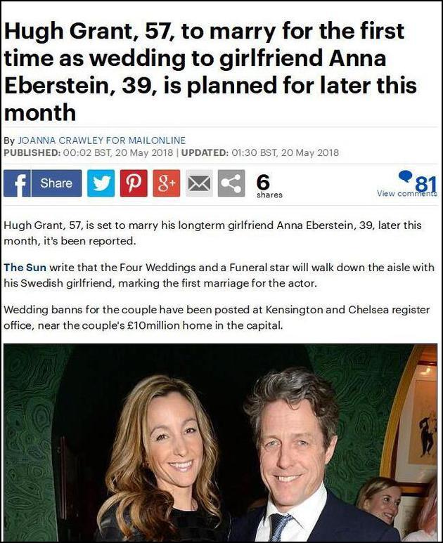 休·格蘭特被認為是“英國渣男”,如今也要結婚了?_風聞