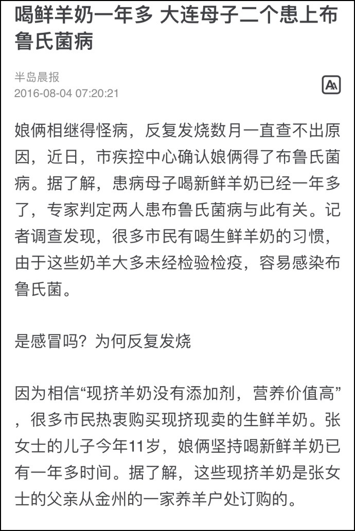 若疏忽這些,才出羊圈就上餐桌的鮮奶,或不遠迢迢網購的私家羊奶牛奶,看似搶到“鮮”機,病從口入的風險也大大提高了,免疫力較差的小朋友、老人和孕婦需要慎重嚐鮮。