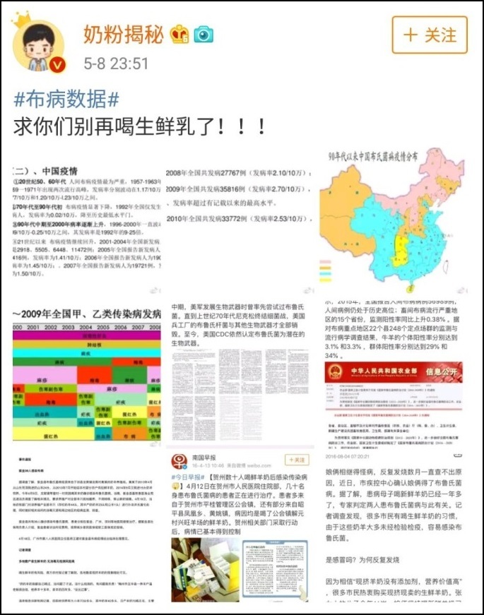 著名母嬰育兒博主、乳品行業從業人員@奶粉揭秘,曾在微博中多次呼籲網友不要再喝生鮮乳了。因為無論是羊奶、馬奶,還是牛奶,現擠的品質和衞生都很難保證,擠奶徒手操作,容易將細菌等微生物帶入,一些民眾存在着現擠奶更安全衞生的迷思,生喝鮮奶實際上是存在着很大的安全風險的。