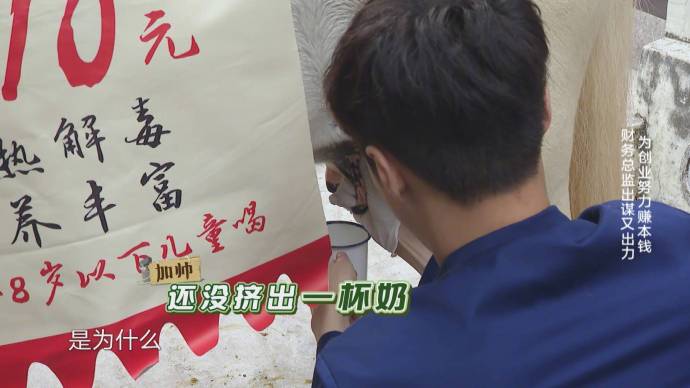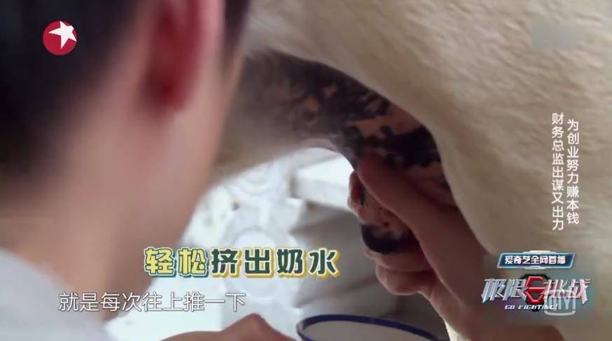 折騰了一番功夫而無果的張藝興,最終靠着智囊團搭檔的幫助,才非常生疏地擠出了第一杯奶: