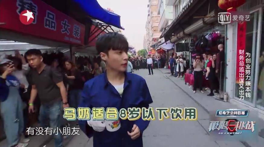 興奮的張藝興直接拿着新鮮出爐的第一杯奶到處尋找顧客,節目組也在後期花字和字幕中多次強調: