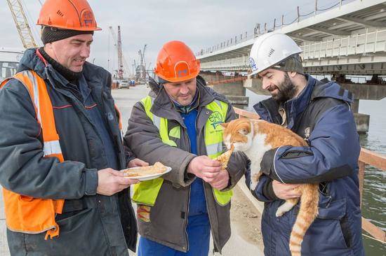 報道稱,這隻橘貓是大橋的非官方吉祥物,名為Mostik,在俄語當中是“橋”的意思,2015年時被修建大橋的工作人員收養。