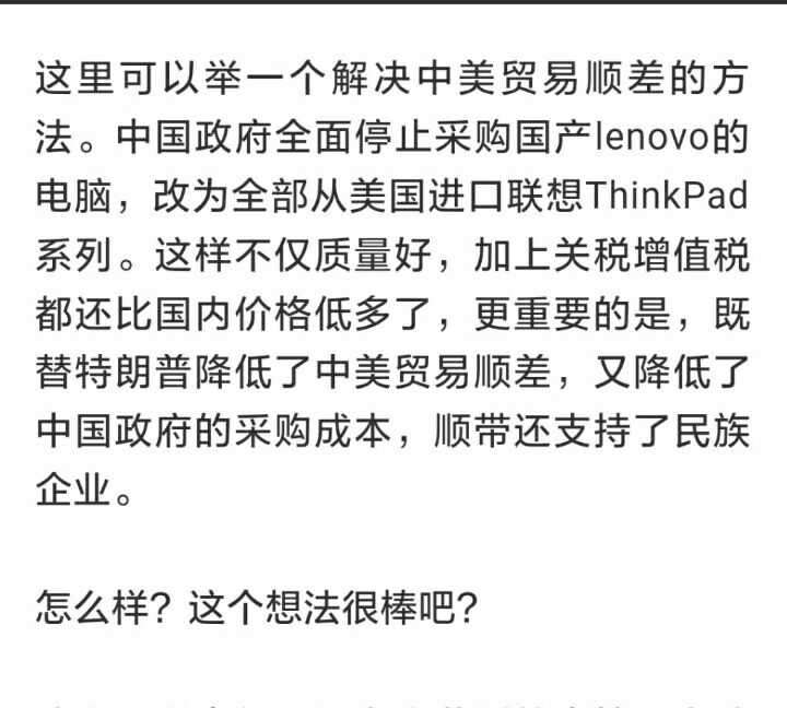本篇完稿前,有網友傳來一大為聯想解困,為國分憂之妙計,與諸位分享: