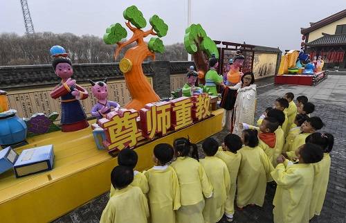 資料圖片:2016年12月27日,河北省衡水市的孫敬學堂的老師在給孩子們講解尊師重教的歷史故事。新華社記者李曉果攝