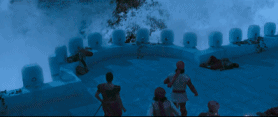 最終決戰的兩人互毆,別看動作都不是太大,內功愣是能把身邊幾十米雕像的基石都幹碎了。