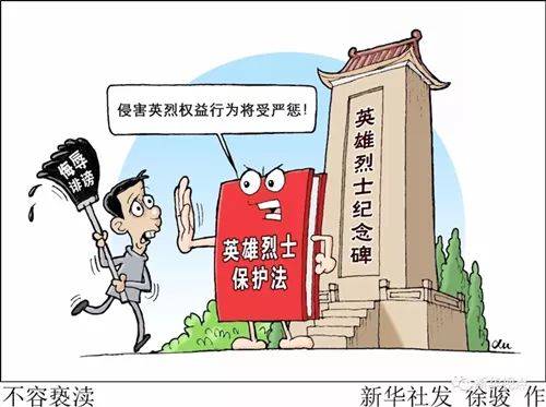 不到一個月前,4月27日,十三屆全國人大常委會第二次會議全票表決通過了英雄烈士保護法,英雄烈士的姓名、肖像、名譽、榮譽受法律保護,禁止歪曲、醜化、褻瀆、否定英雄烈士的事蹟和精神,宣揚、美化侵略戰爭和侵略行為,將依法懲處直至追究刑責。2018年5月1日起正式施行。