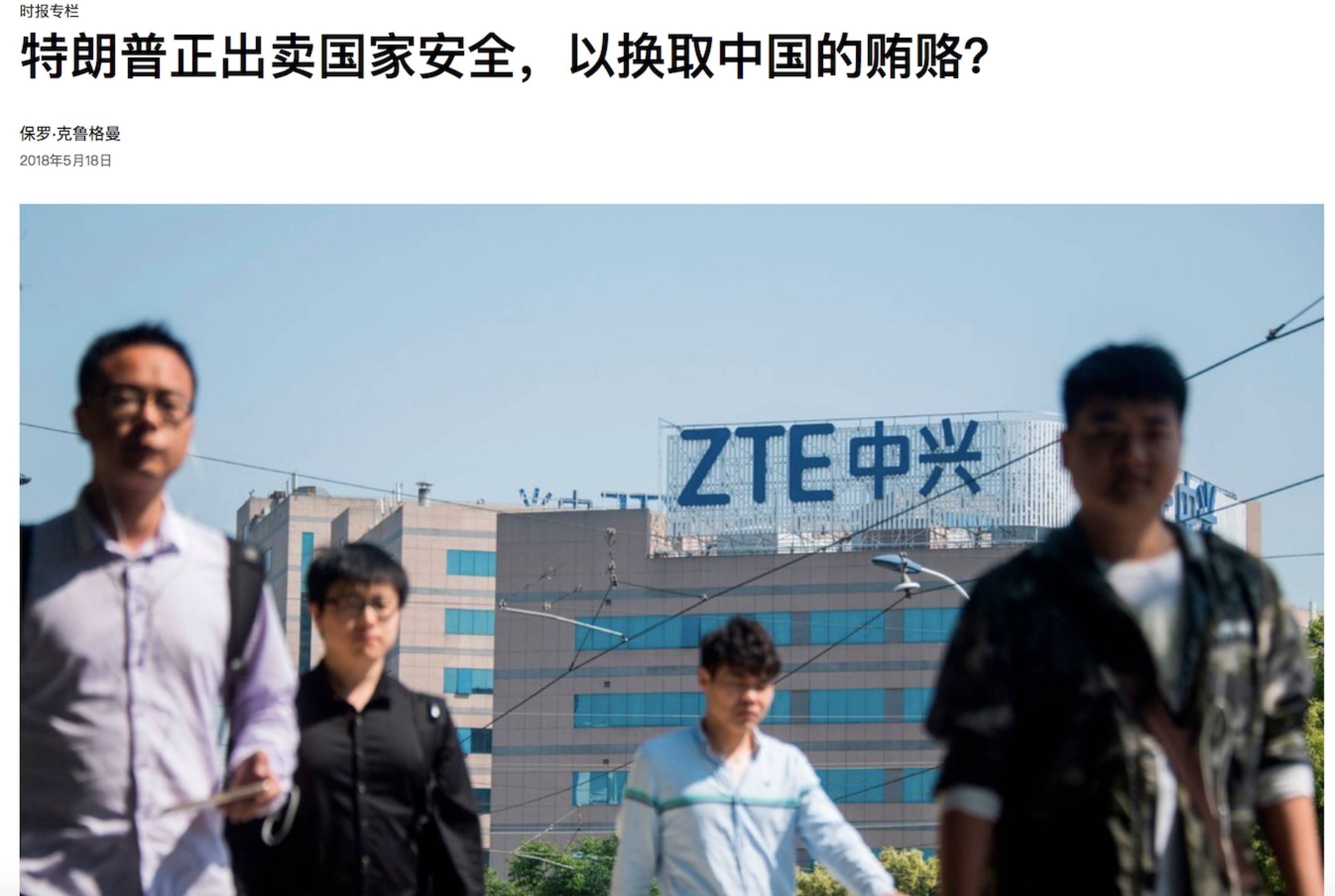 該篇評論主要的論點就在於,特朗普本人與家族集團曖昧不清,他的集團牽扯到多單國際貿易中,因此他一直存在着出賣國家利益為自己牟取利益這樣一個問題。在中興這個問題上,他稱“暴露”特朗普“通中”的關鍵證據就是特朗普在推特中的這句話: