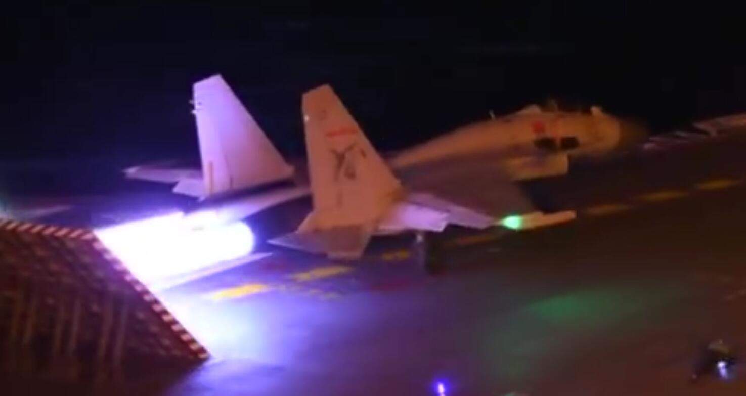 中國海軍確實是要在搶頭條這件事情上不給別人出路。昨天首艘國產航母進塢,今天海軍就公佈了這個海軍艦載機在遼寧艦上進行夜間起降訓練的畫面。儘管從之前有關航母艦載機部隊完成訓練大綱所有科目的官方報道里,我們就已經能確定中國海軍艦載機部隊已經完成了艦載機夜間起降訓練科目的情況。