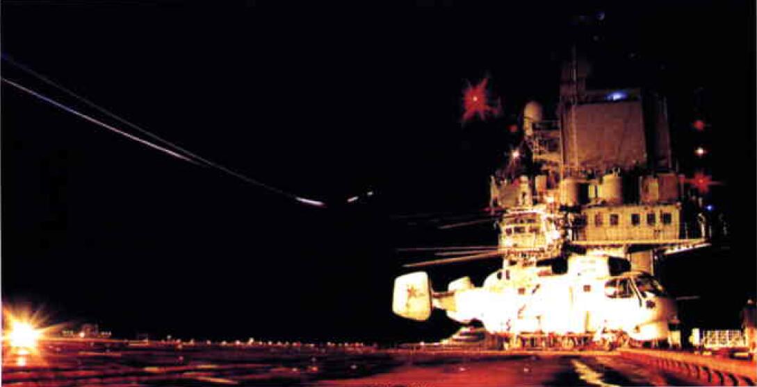 在中國航母的夜間着降系統的研製和艦載機部隊夜間起降訓練上,因為系統的高度相似性和兩國關係的友好程度,俄羅斯的相關係統和部隊訓練經驗對於中國的影響還是相當巨大的。按照1143.5型航空母艦也就是“庫茲涅佐夫”的配備,夜間着艦配備了着艦進場無線電引導裝置“電阻器”和另外的一套着艦視頻監視裝置,二者配合“月亮-3”光學着艦系統一起實現航母艦載機的夜間降落。俄羅斯雖然在解體之後窮的要死,但是也在努力之下,在1997年開始了艦載機在陸基機場是模擬夜間起降訓練,並於1999年實現了俄軍艦載機在航母上的實際夜間起降。這些設備和訓練經驗,也成為解放軍夜間起降訓練的重要參考。