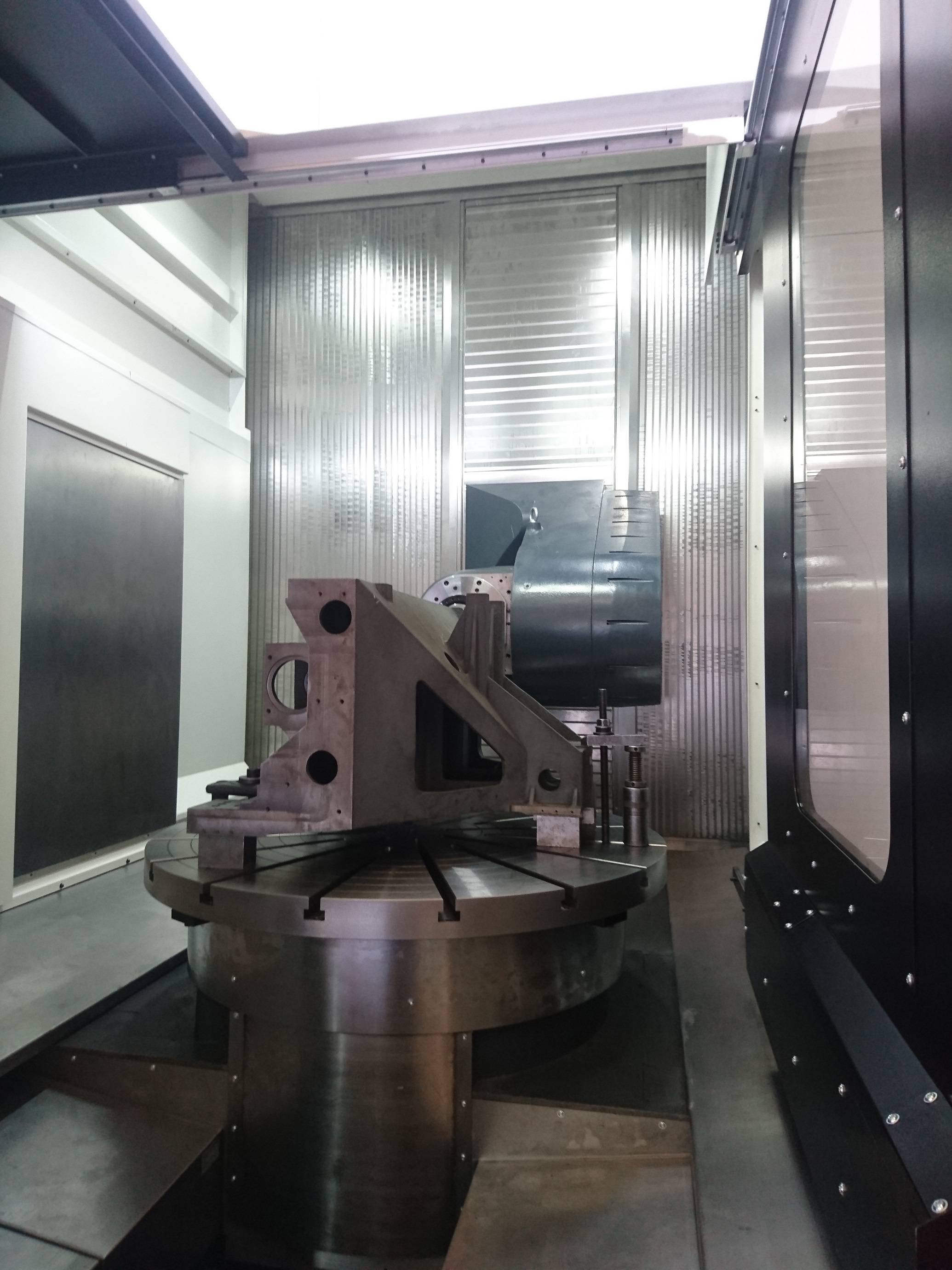 其刀具主軸最大功率為38kW,最大扭矩為186Nm,最大轉速為18000rpm,基本滿足高速重切削的需求;最大進給速度為48m/min,基本滿足對尺寸較大的複雜零件的加工需求,花崗岩底座和高剛度牀身設計則保證了很高的加工精度——直線定位精度達到了5μm,重複定位精度達到了3μm;而角度定位精度則達到了5",重複定位精度達到了3"——這已經是量產型高端機牀的國際一流水平。