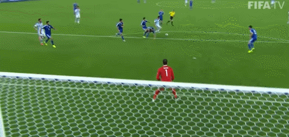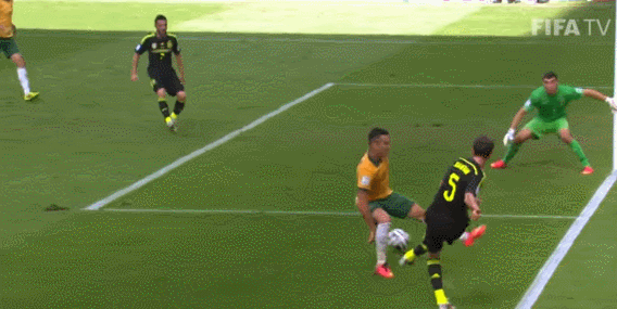 澳大利亞2014年被分在死亡之組很不走運。蒂姆卡希爾這個接30米長傳的凌空抽射展現了他一流的射門腳法,給袋鼠國留下了為數不多的美妙回憶。被進球的這個門將,是西萊森吧。