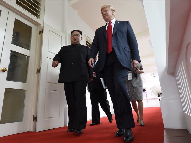 當地時間6月11日早上9點,特朗普和金正恩正式見面。這是兩國領導人歷史上第一次會面。