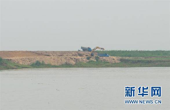 工程車在矮圍上挖沙。新華社發(張笑宇 5月10日攝)