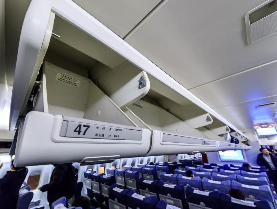 沿着長長的過道,向在機尾的座位走去,旁邊是充滿歷史感的頭頂行李架。現在的波音飛機,無論大小,都已經改用曲線外形、關上後與天花板合成一體的新產品。眼前這種稜角分明的老行李架,正在逐漸退出舞台。