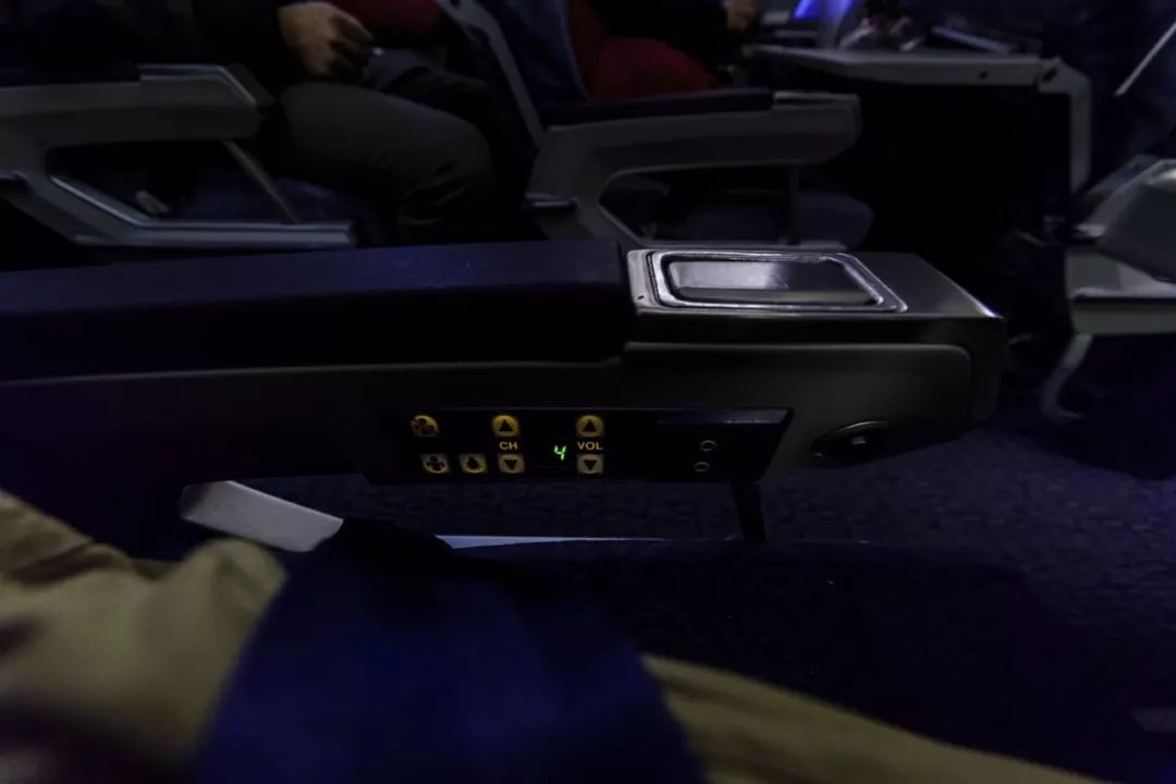 座椅扶手上還保留着煙灰盒。B-2447加入國航的時候,中國民航已經禁煙了,保留煙灰盒一是因為產品“慣性”,另外也是讓機組“捉住”抽煙乘客之後,有地方可以滅煙。