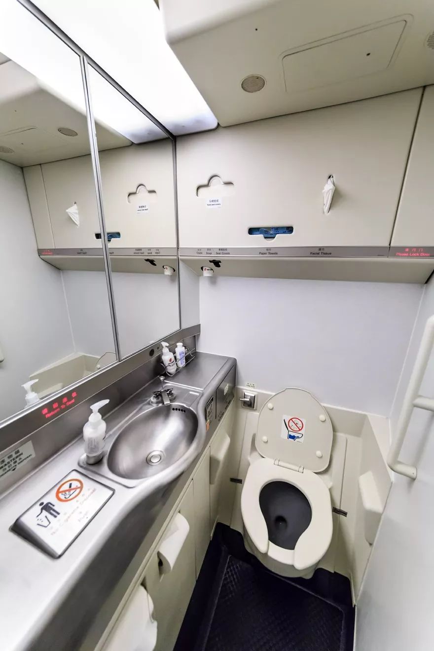 飛機不年輕了,但衞生間依舊乾淨整潔,井井有條。