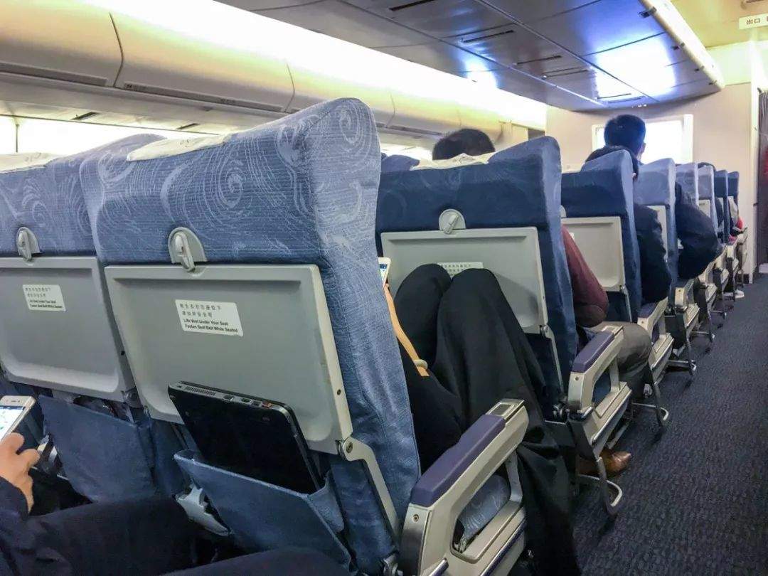 回到座位坐下。座椅前後間距一般,不覺得擠,也不能完全舒展開身子。