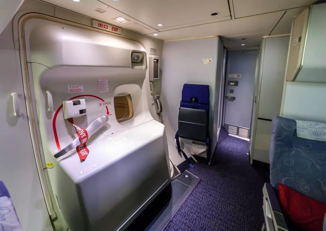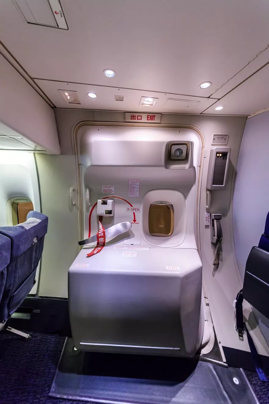 後艙門。艙門下半部分用來安裝充氣滑梯的巨大凸出,很有讓人忍不住坐上去的衝動(勿坐)。
