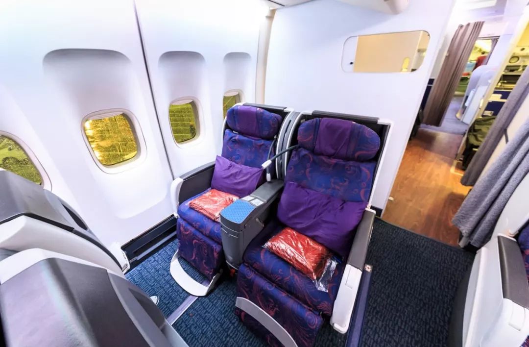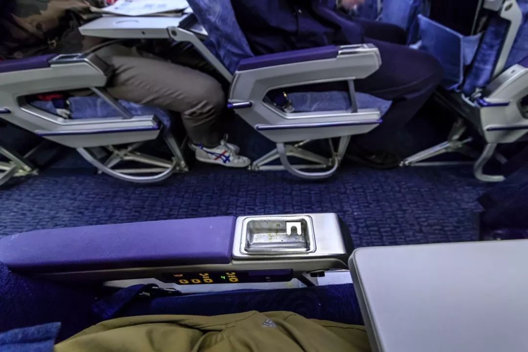 當然,總體收拾齊整的椅子也還是有的。這款老式的商務艙座椅不能放平,舒適度與今天的產品也沒法相比。