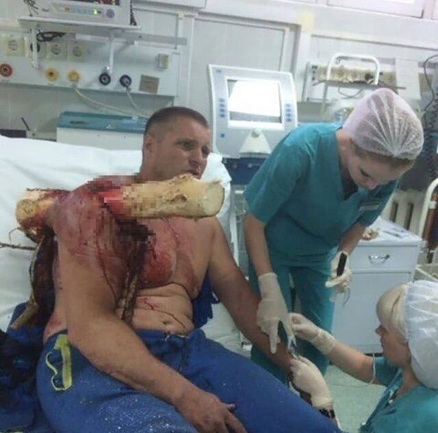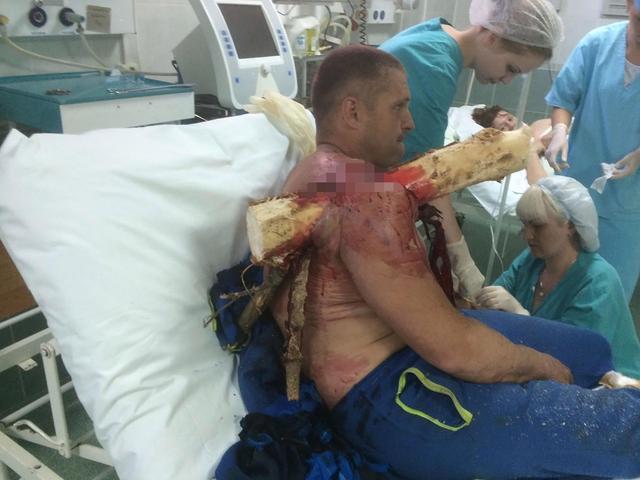 很快,伊萬被同伴們送到了醫院,當然還帶着這麼大一根樹枝,或者我們應該説樹木更確切。