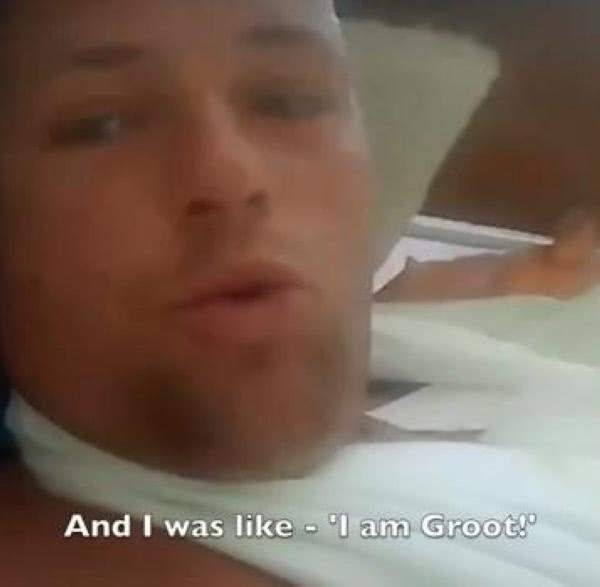 伊萬精神狀態非常好,還在醫院裏面擺出姿勢拍照,並對醫生和護士大喊“我是格魯特!”要知道,這是《銀河護衞隊》中樹人格魯特唯一會説的一句人類話語!