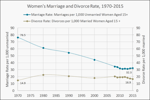 2015年,每1000個美國人中有32.3人結婚,有16.9人離婚。