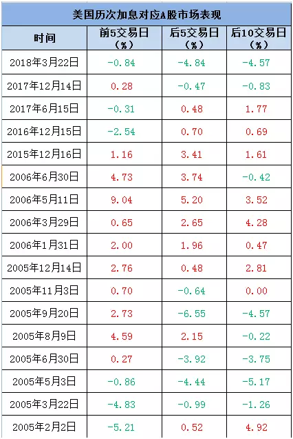 從歷史數據來看,美聯儲加息對A股影響並不是十分明顯,A股依然按自身規律運行。來看看歷次美聯儲加息前後A股走勢: