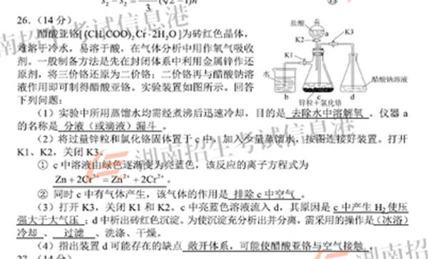 2018高考全國I卷理綜涉嫌泄題的填空題。