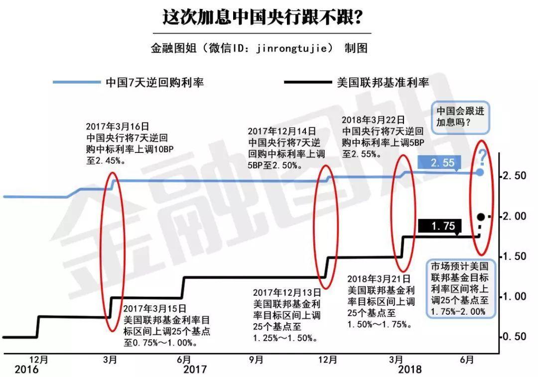 中國央行應對的手段當然是同步加息,當然不是上調基準利率,即老百姓眼中的正式加息,而是上調MLF和逆回購利率。兩者都是央行-商業銀行之間的借錢利率,與美國式的正式加息是一致的。