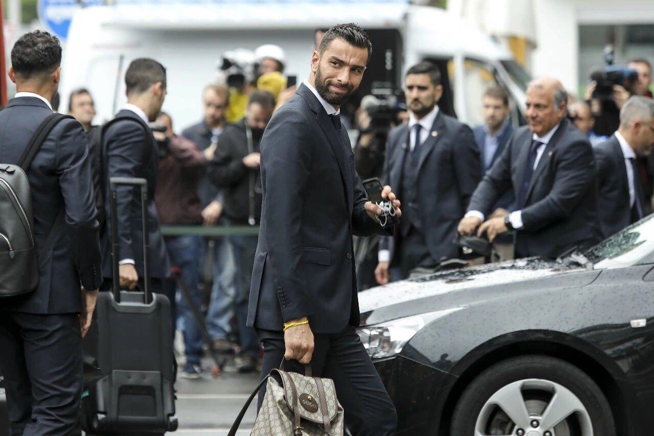 葡萄牙隊也很拼。居然直接上了一身黑西裝,我個人是不喜歡穿黑西裝的,不過球星長的帥也就不強求這麼多了。一字領襯衫,海軍藍領帶,三件套。