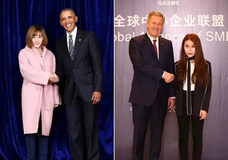 2017 年 11 月,美國前總統奧巴馬、德國前總統武爾夫親赴上海出席「全球中小企業峯會」,與來自中國各地的多位微商合影。