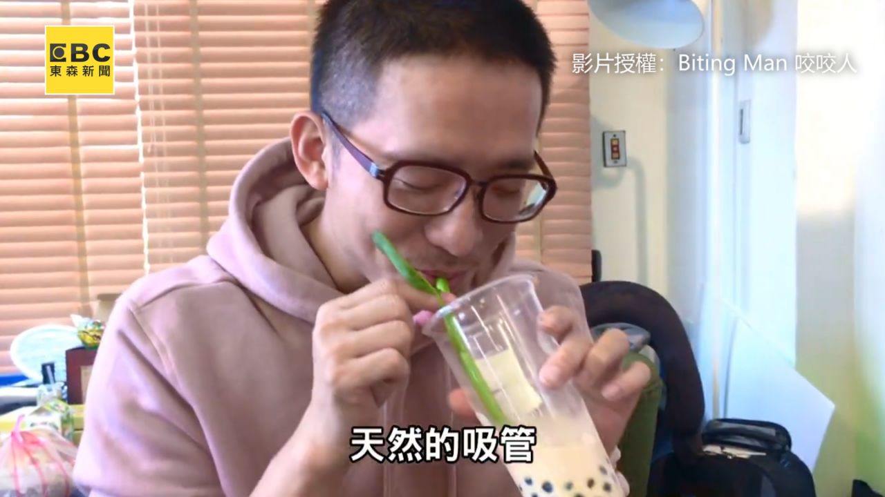 首先是**@Biting Man 咬咬人** ,測試了五種食物來當吸管:脆笛酥、玉米棒、蛋卷、空心菜、竹輪