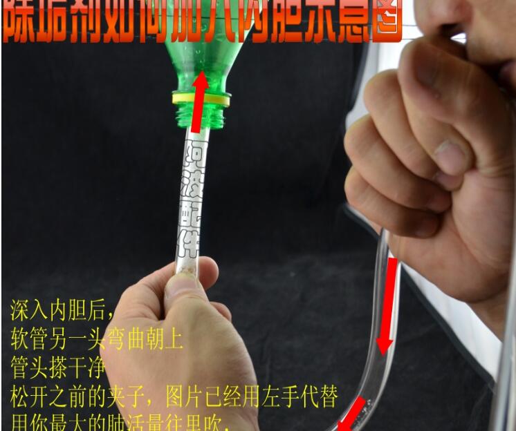 4、還有種更廉價的方案,是直接用PVC軟管從熱水器的鎂棒插入口去吹檸檬酸進去,我國勞動人民的智慧是無窮的~~