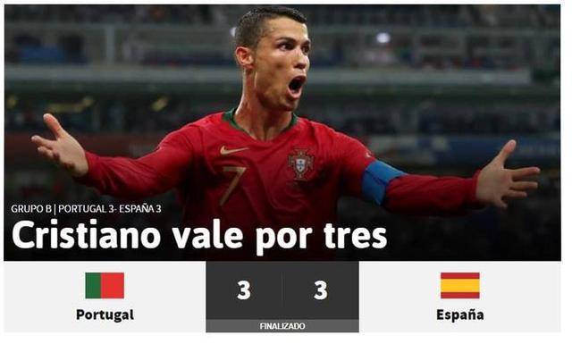 葡萄牙和西班牙的3比3是紙面上的答案,藏在答案背後的是C羅的帽子戲法。在這個舞台這種規格這等難度的賽事裏,C羅完成了一次個人英雄主義式的拯救,對於無比崇尚個人英雄主義的阿根廷、對於阿根廷人期待中的救世主梅西來説,是一記嘹亮的耳光。現場解説徐陽徐指導,每當他用那標誌性的膠遼普通話重複一遍“C羅是在扛着葡萄牙前進”,就是在梅西火辣辣的臉上增加一度體温。