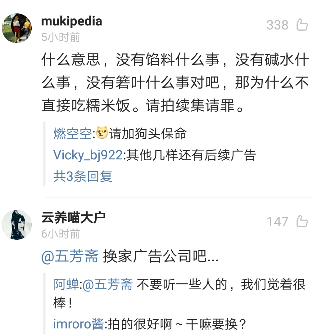 正值端午佳節,中華老字號五芳齋前幾日做的一個宣傳視頻最近火了,可以説是特別應景,網友紛紛吐槽,究竟經歷了怎樣的心路歷程,這個文案才過審的: