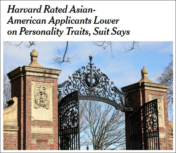 亞裔學生是全美考試分數和學習成績最好的族羣,但是這些學生的精英大學入學率並不見得比其他族羣的學生高。為此,招生公平組織(Students for Fair Admissions)將哈佛大學告上了法庭。
