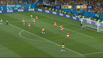 哲馬伊利左肋跌跌撞撞突破包夾後直傳禁區,楚伯在門前13米處轟在蒂亞戈·席爾瓦面部,蒂亞戈·席爾瓦應聲倒地,好在並無大礙。上半時結束前,內馬爾左側開出角球,蒂亞戈-席爾瓦前點距門5米處頭球一蹭稍稍高出。在世界盃歷史上,巴西上半時比分領先只有1場遭逆轉告負(2010年1比2不敵荷蘭)。瑞士上半時4次犯規,有3次是貝赫拉米侵犯內馬爾。