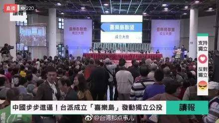 今年台灣組建了一個叫“喜樂島聯盟”的台獨組織,這個組織設定了一個“台獨時間表”,就是要在2019年4月6號舉行所謂的“台獨公投”!