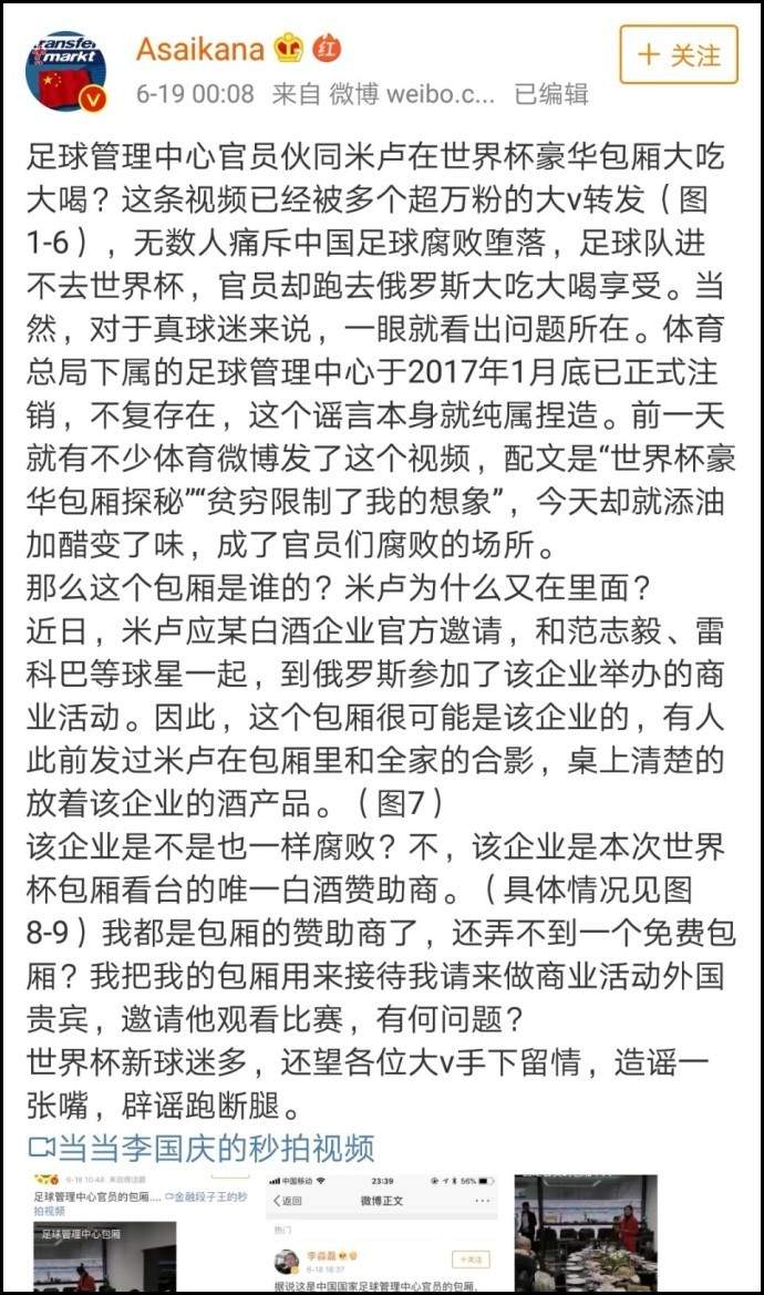 然而,就是這段短短9秒鐘的視頻卻是引發了極大的爭議。許多營銷號在轉發該視頻時都配文:“踢不進世界盃,但是豪華包廂大吃大喝還是沒有哪個國家能比的了!”