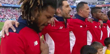 奏國歌,巴拿馬球員激動落淚,這是他們歷史上首次參加世界盃,看台上巴拿馬球迷高唱國歌: