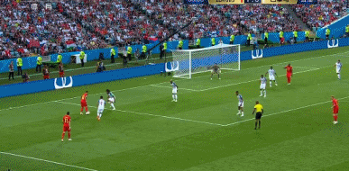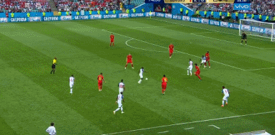 第26分鐘,比利時前場右路斷球,德布勞內右路腳後跟回敲,阿扎爾得球突入禁區右側右腳勁射,皮球偏出球門: