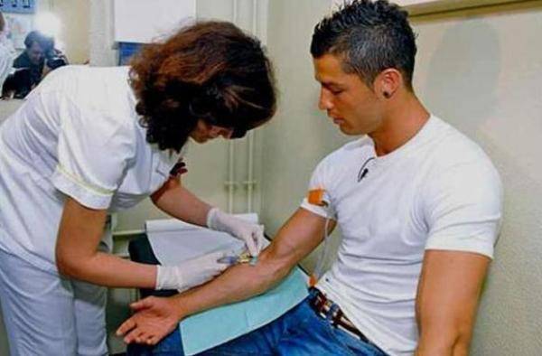 對,你沒看錯,是獻血,C羅一直以來做的事。為了獻血,C羅甚至從不文身。