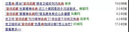 因為大家懶得去查WHO公開的資料,結果就變成:各家紛紛舉起WHO的大旗,搶先一步把給“遊戲成癮”是“精神病”的説法定了性,感受一下: