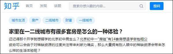 知乎問題:家裏在一二線城市有很多套房是怎麼的一種體驗?