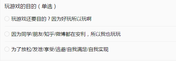 這裏頭三個選項,是以糟糕到理想的順序排列的,當時有三分之一的人選了1,也就是説,他們沒有認真思考過:我玩遊戲的樂趣到底在哪裏。
