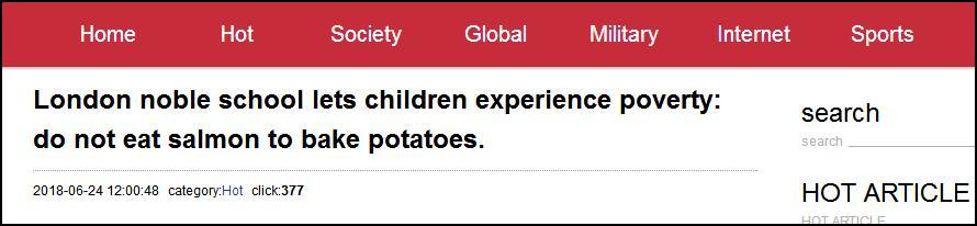 倫敦貴族學校讓孩子“體驗貧困”吃烤土豆和水果,網友:怕是對貧困有什麼誤解!_風聞