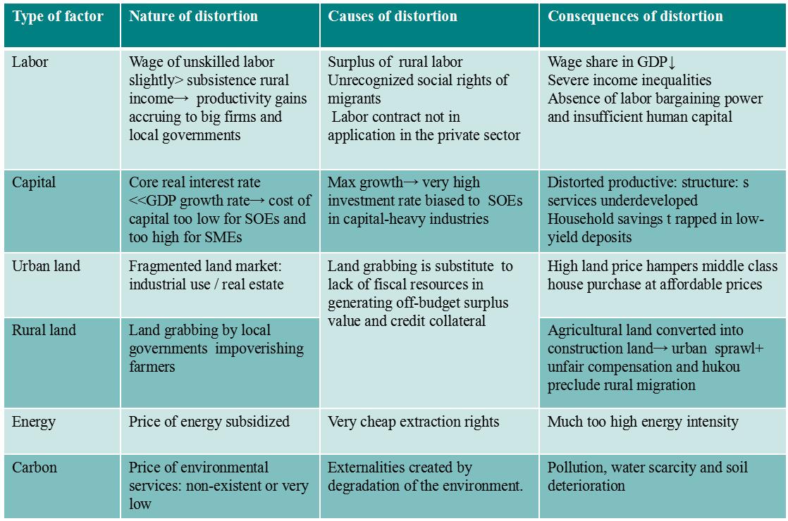 圖9總結了2012年不平衡的資本密集型增長,主要是因為各種要素價格的扭曲。這是我們很容易看到的現象。在改革的特定階段價格管制被放鬆,因此很多產品和服務以市場價格進行供應,這個時候中國既是市場經濟國家,但是中國也是社會主義國家,這種要素價格沒有正確反映到市場價格上面,而是被扭曲了。勞動力價格被扭曲是因為農村勞動力進入城市市場,他們的工資水平很低,但是在金融危機之後,這一部分人的收入也開始了逐步上升。資本價格被扭曲,因為國有企業能夠用非常低的成本獲取資金,但是對於中小企業而言,則是完全得不到低息貸款和融資。這種情況對創新是非常不利的,因此在金融系統中需要有這樣的機制,以便讓中小企業獲得更多低成本融資,以激活它們的創新性。