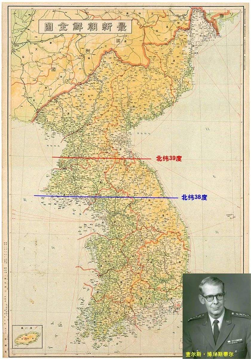 常理來説,根據朝鮮當時的行政區劃來分配美蘇受降範圍是最合理的,但問題來了,當時伯尼斯蒂爾上校手頭並沒有朝鮮行政區劃圖,他對此也不甚瞭解。匆忙之中他只弄來了朝鮮半島的地形圖,其中北緯38度線吸引了他的注意。